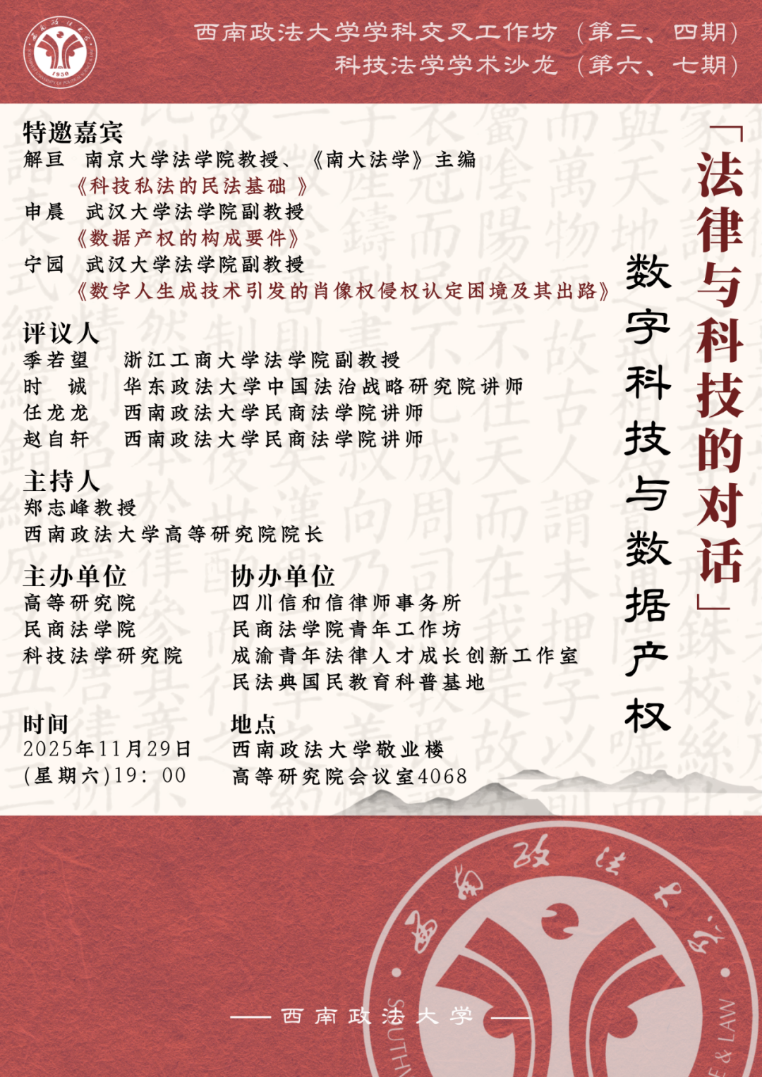 主办:西南政法大学高等研究院、西南政法大学民商法学院、西南政法大学科技法学研究院