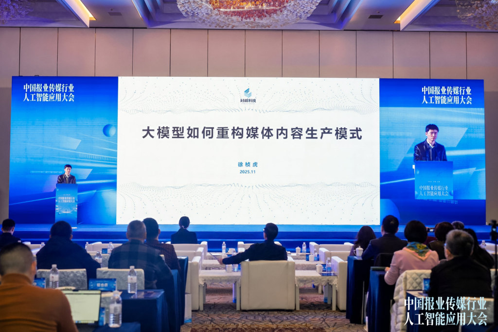 11月28日,2025中国报业传媒行业人工智能应用大会在上海举行。在下午的主题分享环节,封面传媒科技副总经理兼首席数据官徐桢虎分享了大模型如何重构媒体内容生产模式。