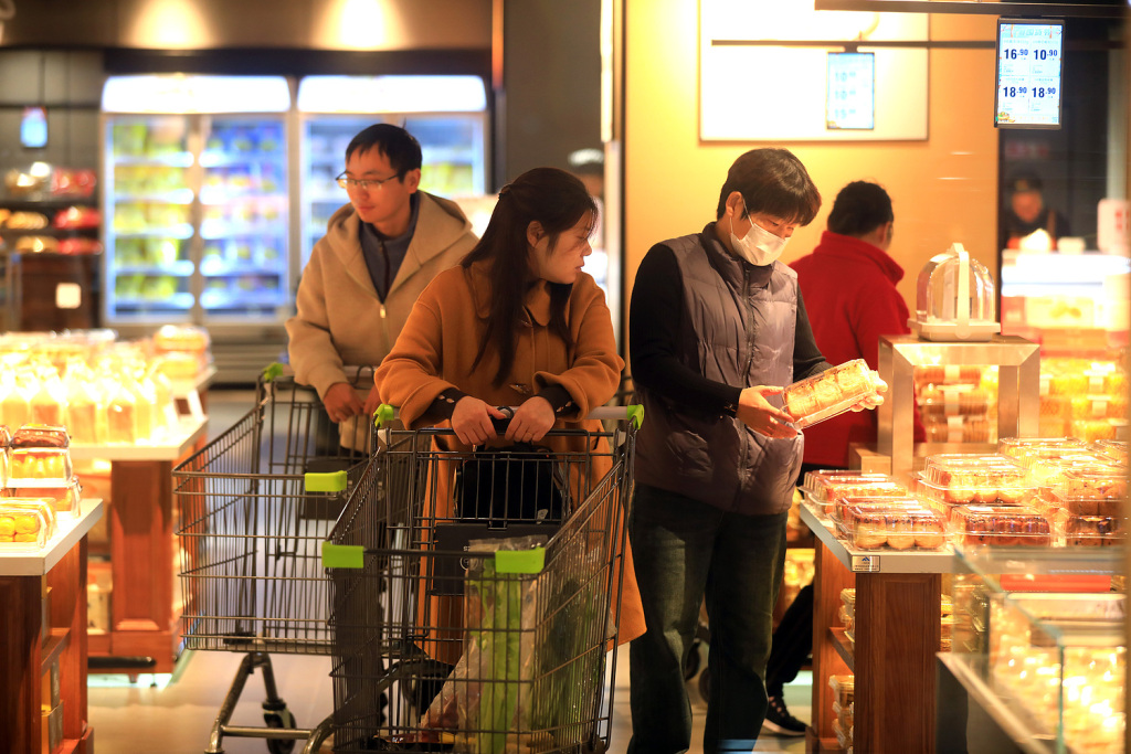 2025年11月10日,市民在江苏省淮安市一家生活超市购物消费。视觉中国 图