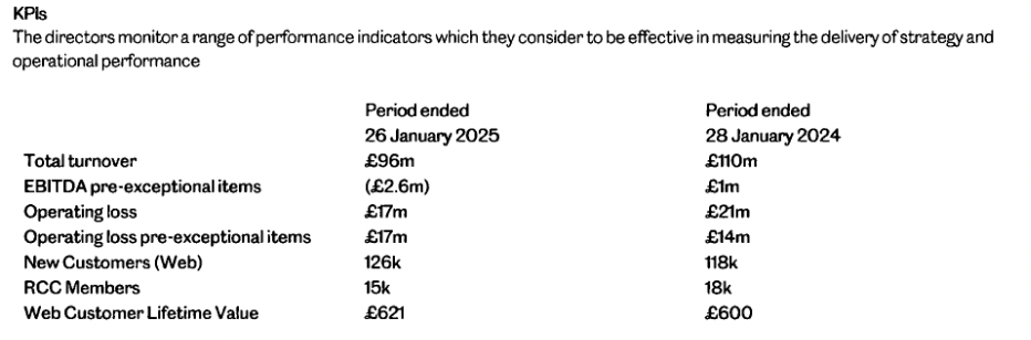 11月5日,Rapha母公司Carpegna Ltd公布的截至2025年1月26日的财报揭示了严峻局面:报告期内Rapha营业额从去年的1.1亿英镑下降至9623万英镑,息税折旧摊销前利润(EBITDA,即扣除利息、税项、折旧和摊销前的收益数字)亏损263万英镑。运营亏损虽收窄,但仍达1718万英镑。