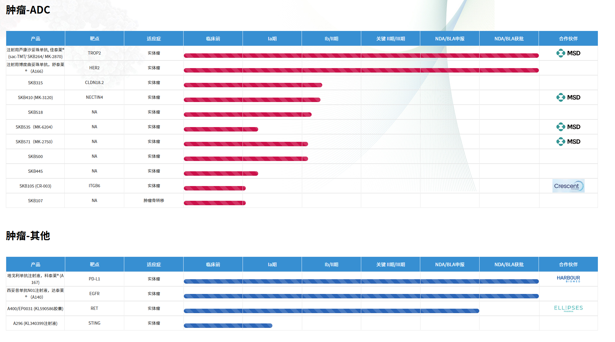从后续管线来看,科伦博泰手中依旧有不少抗体偶联药物。比如CLDN18.2 ADC SKB315、Nectin-4 ADC、SKB410以及双抗ADC SKB571等。