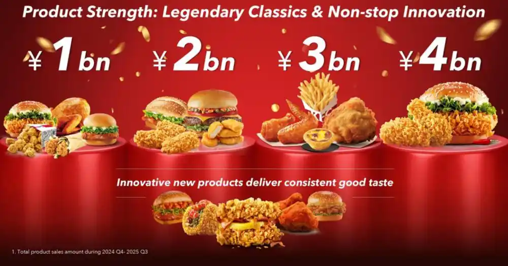 根据2025年举办的百胜中国投资者大会公布的信息,截止到2025年三季度,香辣鸡腿堡的年度销售额已突破40亿人民币大关。